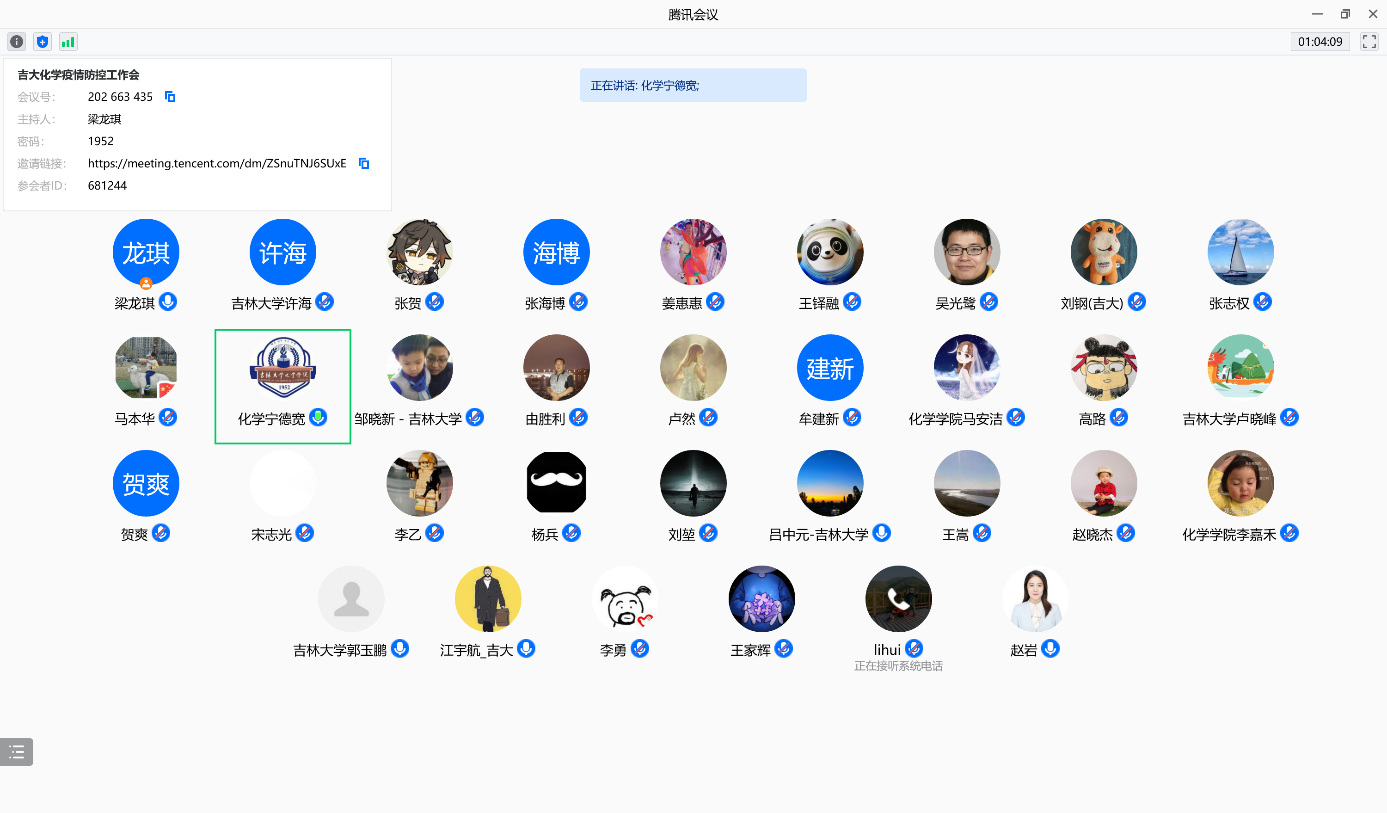 宁德宽传达了吉林大学召开的疫情防控会议精神。他要求学院各系所中心、重点实验室的师生严格按照学校的总体部署和工作安排,做到科学防疫,积极引导,做好涉疫师生隔离工作,关心爱护学生,保障师生学习、工作、生活需求,让学生感受到学院的关怀;做好舆论引导,不传谣、不信谣、不制造恐慌;全院师生精诚合作,严格按照学校要求落实防疫工作,遵守工作纪律,明确个人责任。