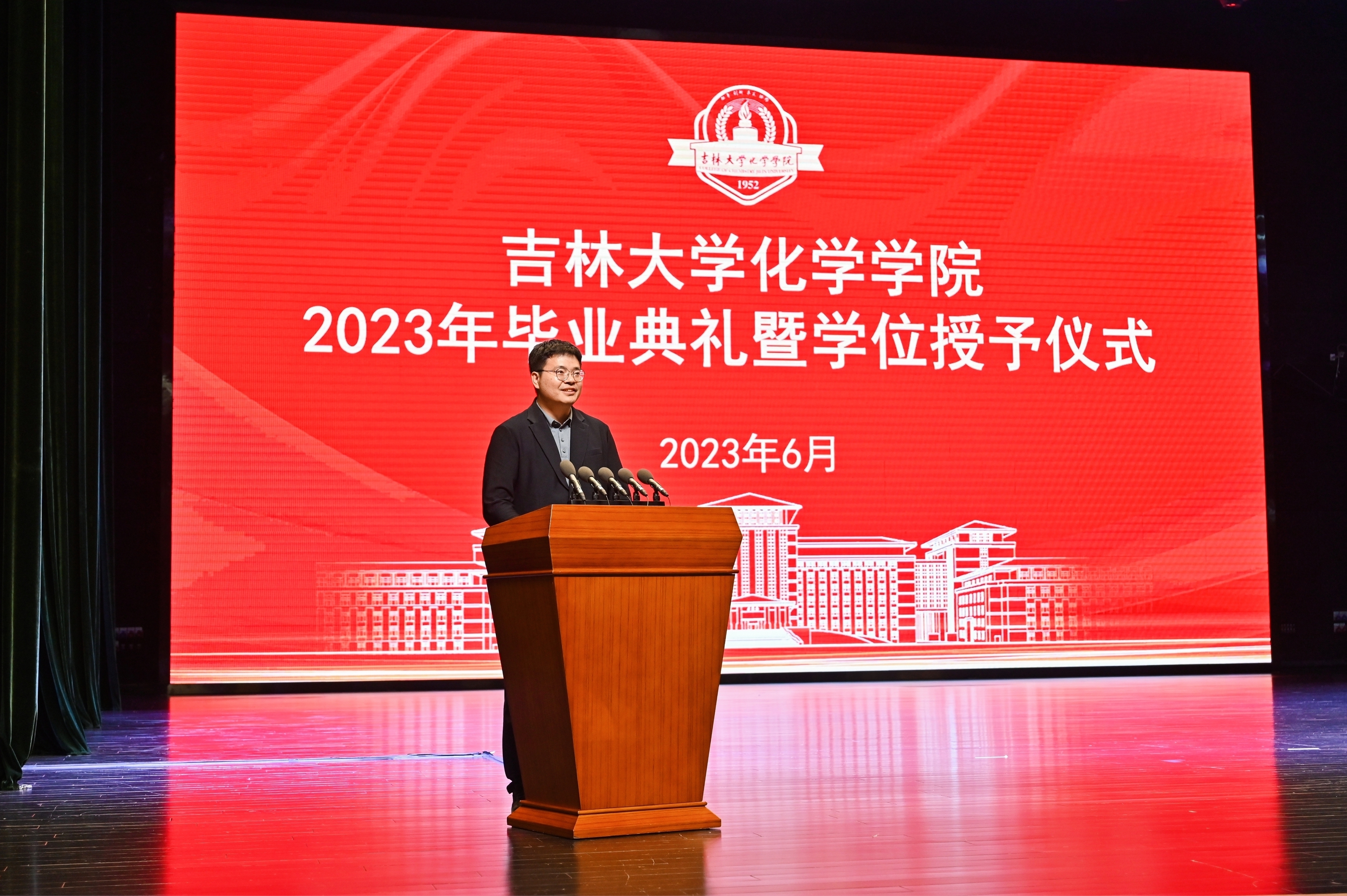 2023届毕业研究生代表、吉林大学2023届优秀毕业研究生迟茜文发言中深情回忆了在学校求学的美好时光,深深表达了对母校师生的恋恋不舍。她表示,吉大化学是一本书,既博大又包容,既严谨又谦和。吉大化学是一座城,这里永远住着怀揣梦想的人,每一个在这里生活过的人都用自己的时光温暖着她的岁月,都用自己的实际行动守卫着她的荣耀和尊严。她代表全体毕业生为学院送上了最真挚的祝福。