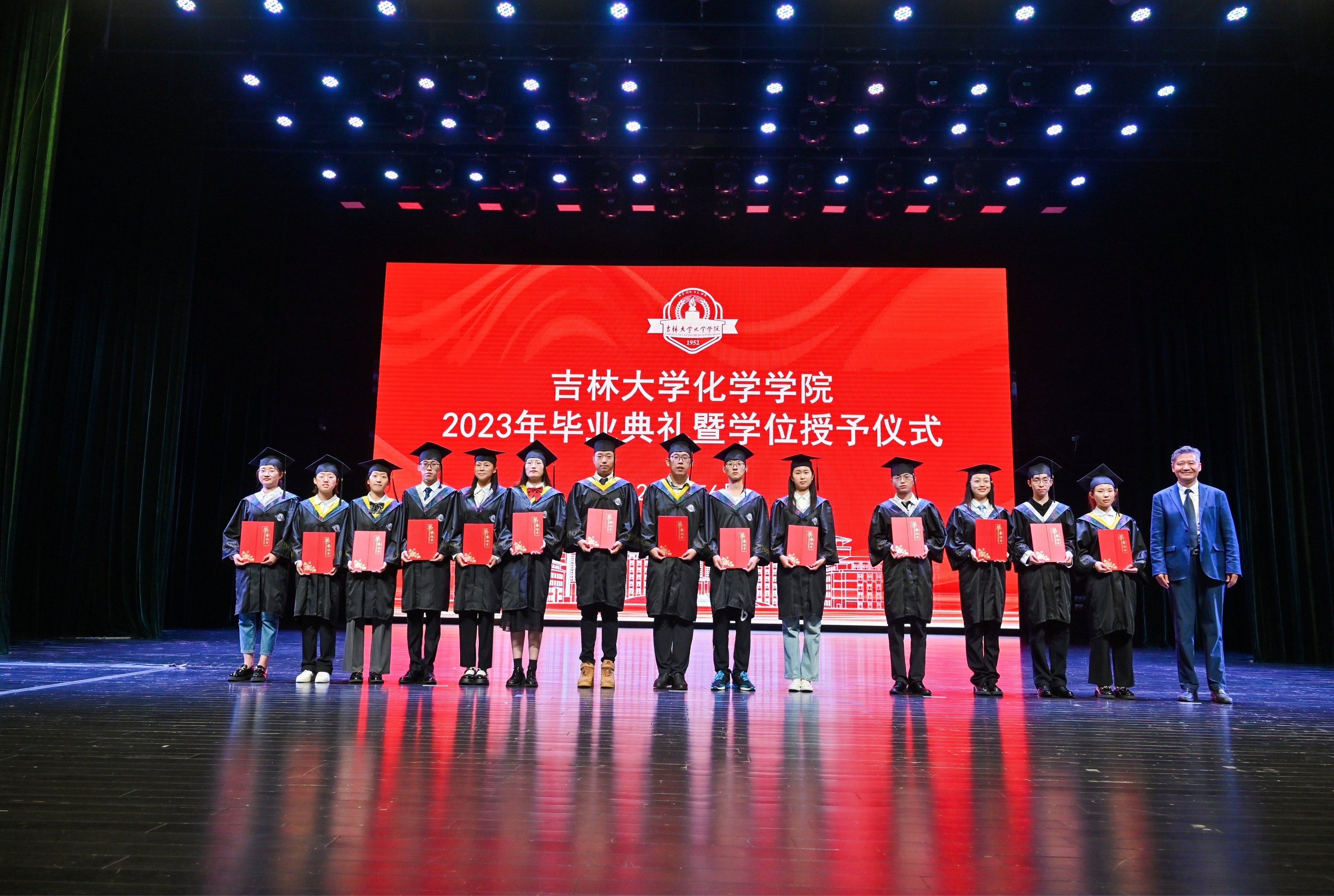 在学位授予仪式环节,副院长李乙宣读《吉林大学学位评定委员会授予硕士、博士学位的决定》、副院长郭玉鹏宣读《吉林大学学位评定委员会授予学士学位的决定》,主礼教授吕中元、郭玉鹏、张海博、李乙为获得博士学位、硕士学位、学士学位的毕业生拨动流苏、授予学位。