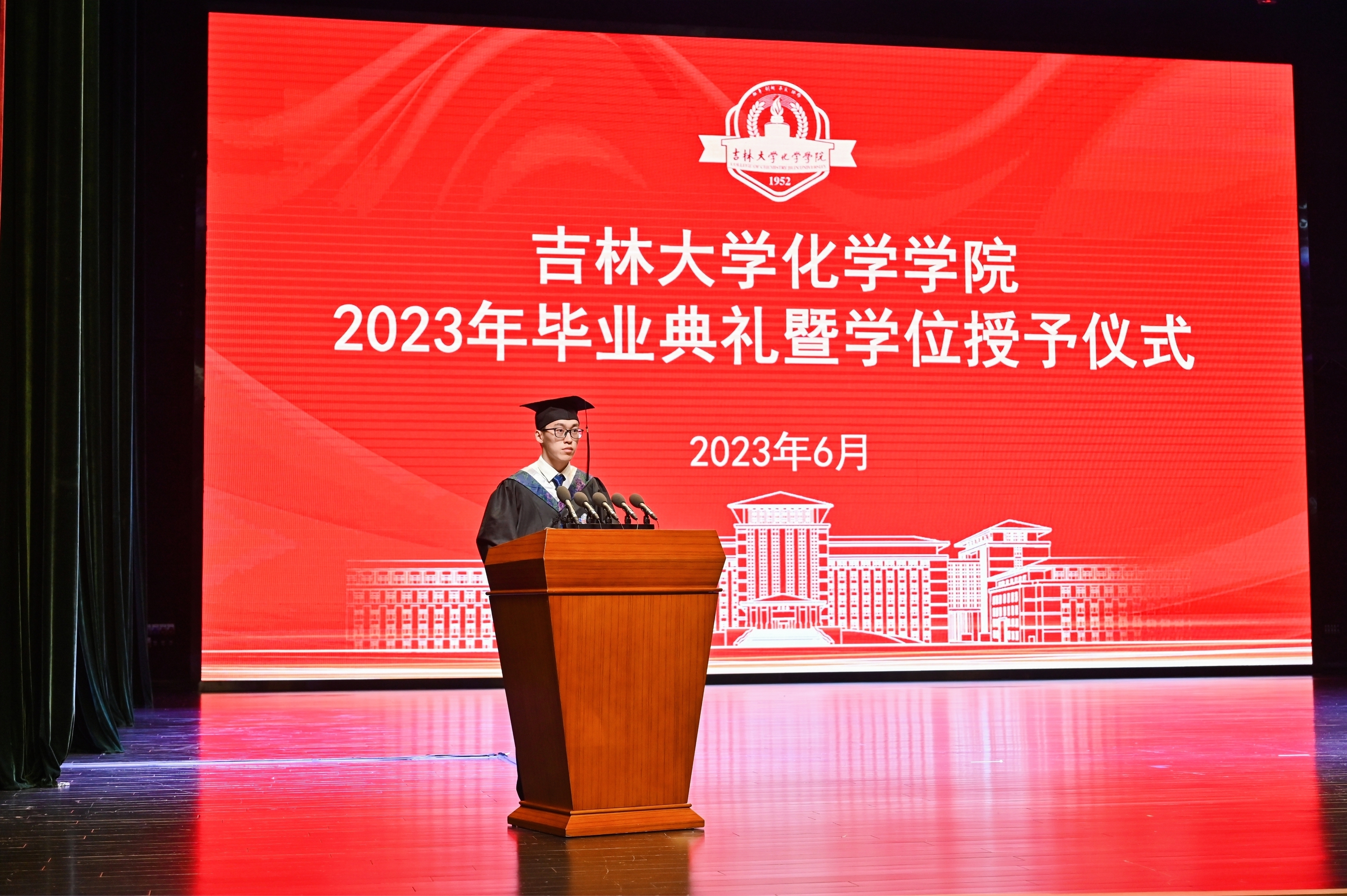2023届本科毕业生代表、吉林大学2023届优秀本科毕业生戚友继发言中表达了对母校、对师长、对同窗的不舍与感激。他表示,全体毕业生将始终发扬“献身、创新、求实、协作”的学科精神,不负母校坚实托举、不负师长潜心培育,以青春之我、奋斗之我逐梦前行,为民族复兴铺路架桥、为祖国建设添砖加瓦,努力成长为可以撑起一片天的“参天大树”。