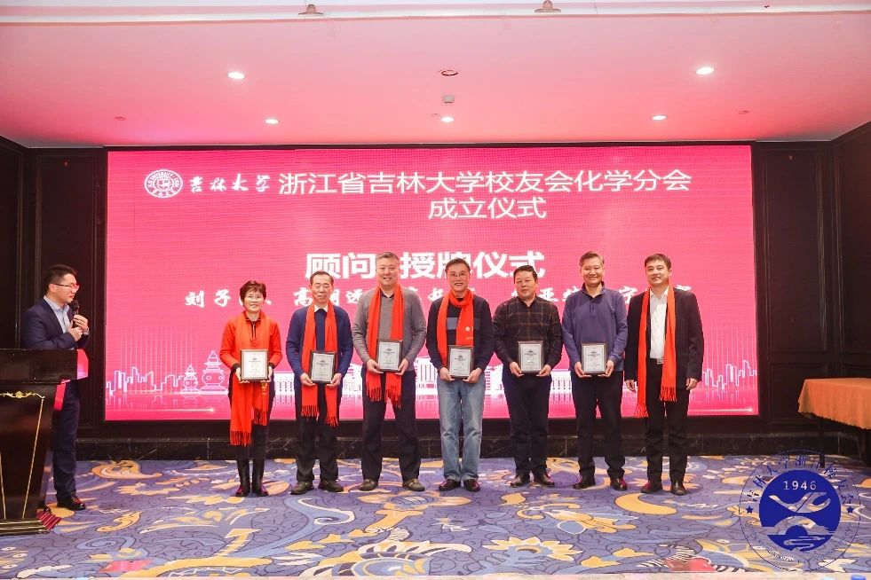 党委书记马本华向浙江省吉林大学校友会化学分会名誉会长沈家骢先生、金钦汉先生颁发聘书(高明远、牟颖代领),并向两位先生致敬,向化学分会顾问宁德宽、刘子阳、高明远、高长有、邵春能、竺亚斌等颁发聘书。国产直播