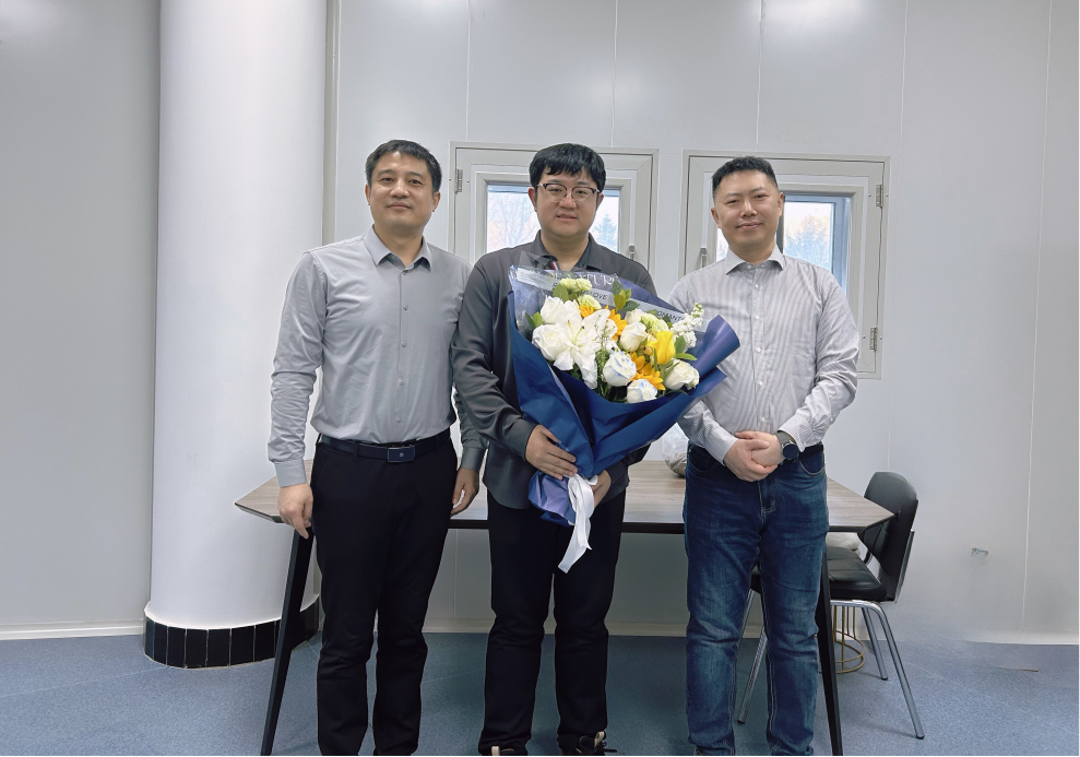 在朱轩伯教授办公室,马本华、李乙与朱轩伯教授深入交流,关切询问其研究方向与进展。朱轩伯汇报了其围绕新能源与机器人轻量化领域开展的研究情况。他表示,未来将继续致力于深化材料构效关系与作用机制的理论研究,推动产学研用深度融合。李乙勉励青年学者要聚焦国家战略需要,同时也应在研究方向聚焦与广度之间做好有效平衡。