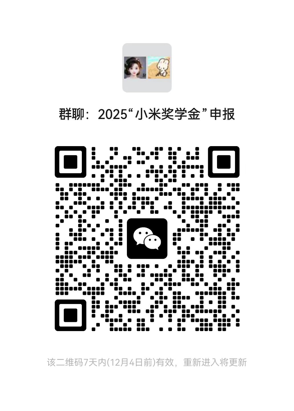 (3)报名研究生扫描二维码加入“2025小米奖学金申报群”。