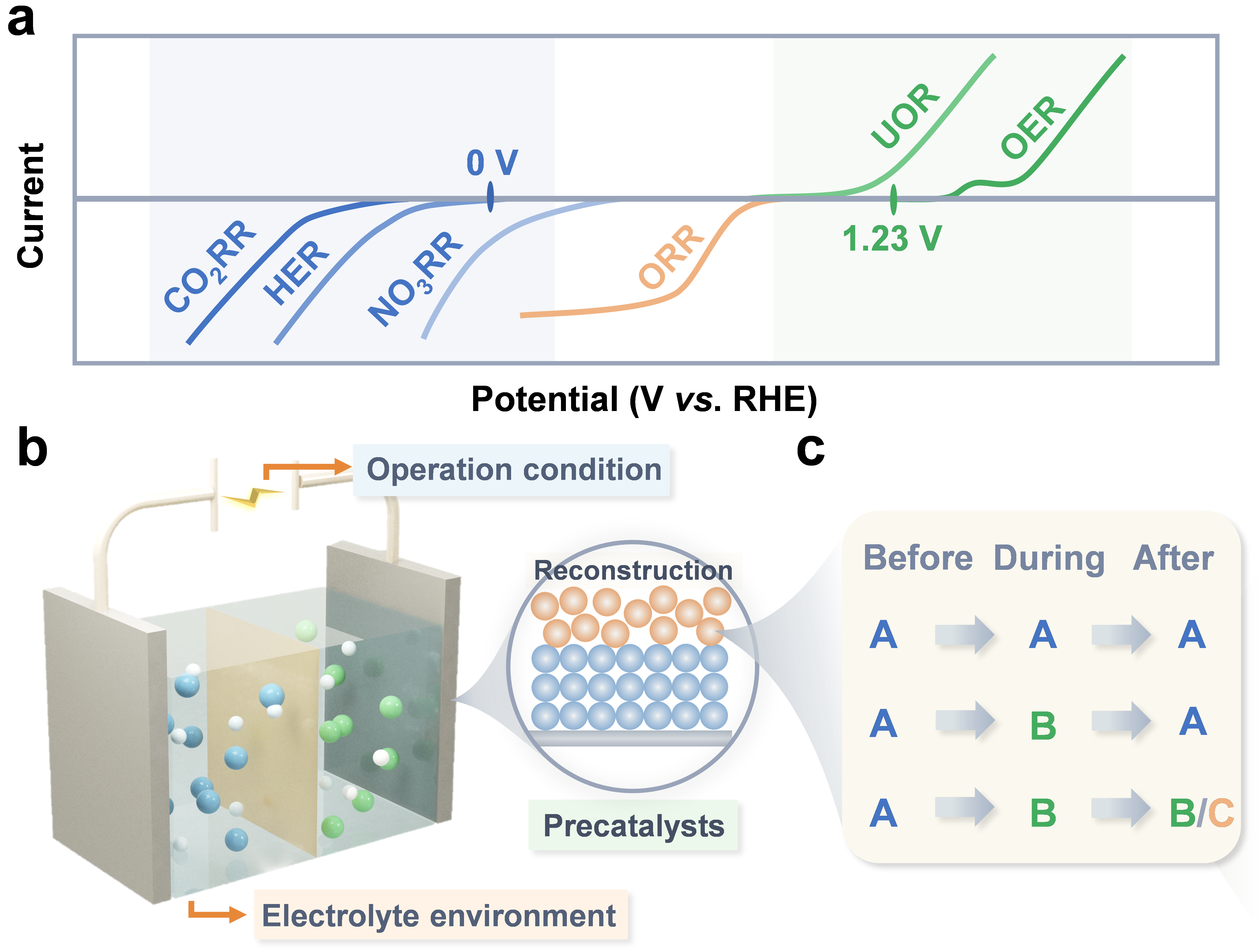重构是电催化过程中的普遍现象,对催化性能具有双重影响:一方面可能通过优化活性位点提升性能,另一方面也可能导致活性位点失活或催化剂降解。因此,理解与控制重构过程对设计高性能催化剂至关重要。近日,吉林大学邹晓新教授团队在《Chemical Science》发表题为“Reconstruction chemistry of electrocatalysts under working conditions”的综述论文。该文梳理了工况下电催化剂的重构现象、化学机理、表征方法与调控策略,展望了重构化学的未来研究方向,为开发重构导向型催化剂提供了设计思路。